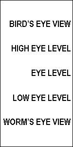 The Bird's Eye and Worm's Eye Views are extreme and are used most often with 3 Point Perspective, so if you are not using 3 Point, then choose a horizon line which is comforably between either of these views. |
